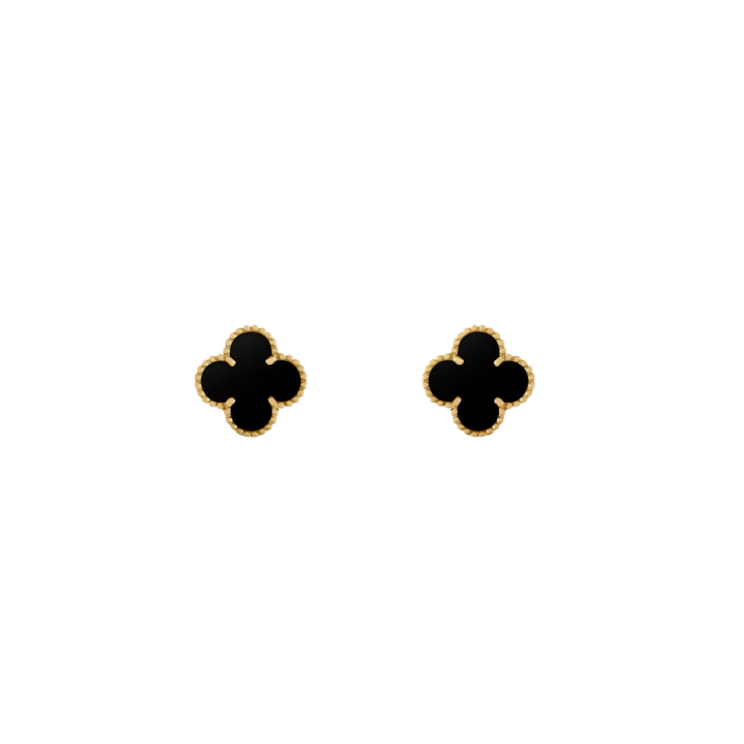 Vintage Alhambra 2 Motif 18K Yellow Gold Onyx Earrings